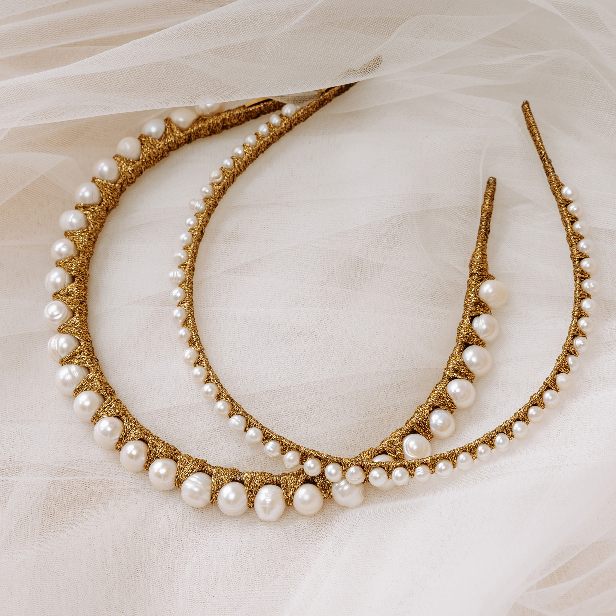 Luksuzni biserni set rajfova prožet prirodnim riječnim biserima i zlatnim koncem. Rajf se sastoji od dva odvojena rajfa koji se mogu kupiti i odvojeno. Ukras je ručno dorađen do najsitnijh detalja. Rajf je ručno motan u kvalitetni konac zlatnog tona. Rajf je fleksibilan i prilagođava se glavi te ne stvara bolove iza ušiju. Boja konca može biti srebrna ili zlatna.